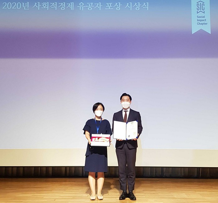 회사측에 따르면, 8월 20일 중소벤처기업부에서 주최한 사회적경제 유공자 포상 시상식에서 대통령 표창을 포상받았다고 전했다.
