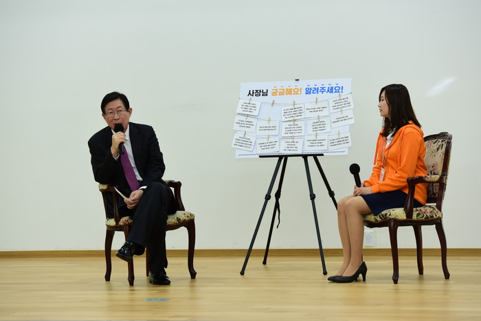 | ▲조환익 한전 사장이 기자단에서 궁금증 해소를 위한 질의응답 시간을 가졌다. © 환경데일리 |