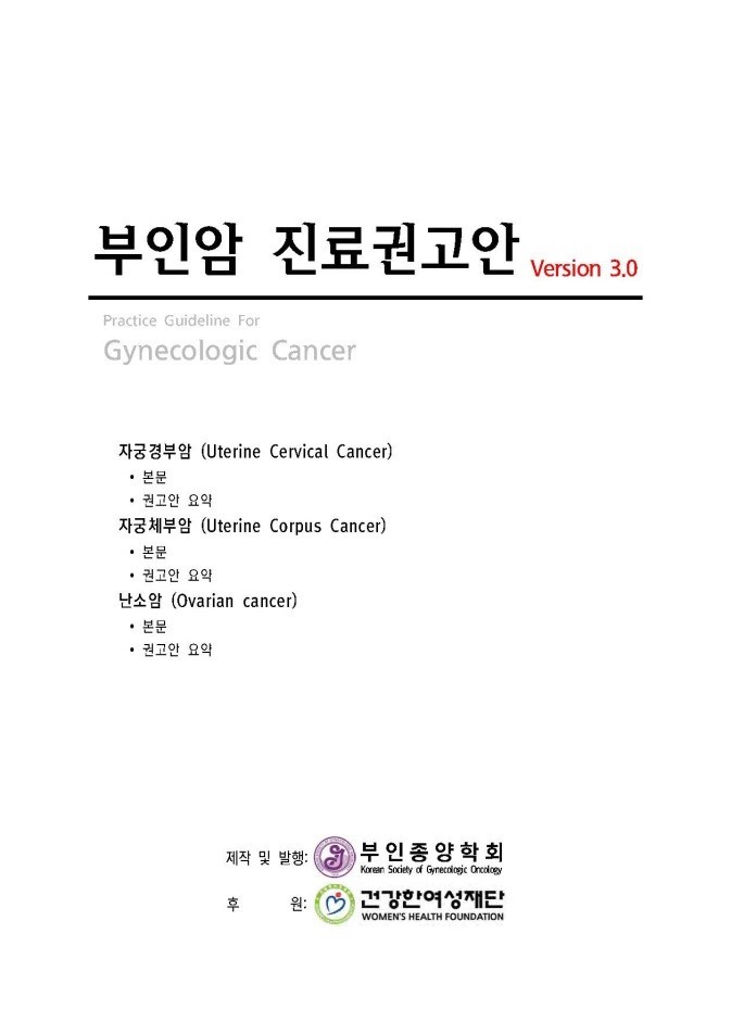 진료권고안은 대한부인종양학회(http://www.sgo.or.kr/)를 통해 무료로 다운로드 받을 수 있다.