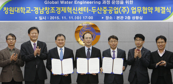 [환경데일리 김영민 기자] 경남창조경제혁신센터(이하 경남센터)와 창원대학교, 두산중공업(대표이사 부회장 박지원)이 '워터 캠퍼스(Water campus)' 과정 개설과 운영에 대한 협약을 맺었다고 12일 밝혔다.