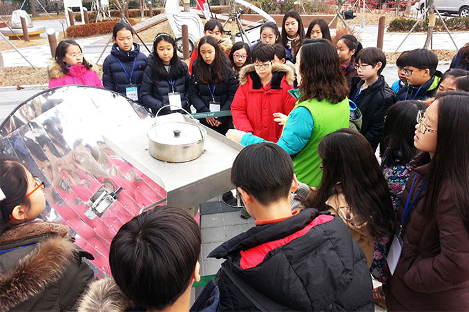 또한 학생들은 자연채광, 지열 에너지, 슈퍼 단열재, 태양광/태양열 패널이 설치돼 있는 두드림 건축물을 돌아보며 효율적인 에너지 사용법과 재생에너지 생산 과정을 견학했다.
