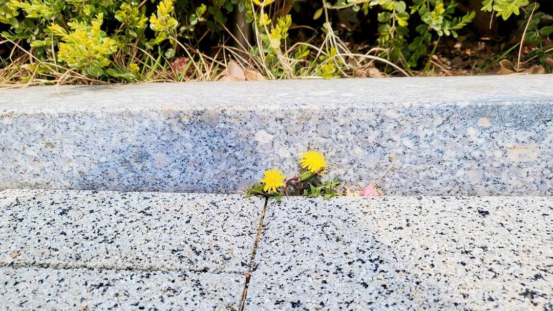 보도블록 사이로 피어나는 들꽃의 위대한 생명력을 찬양한다