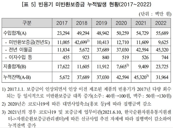 소비자가 찾아가지 않은 보증금이 업체 수익으로 돌아감에 따라 결론적으로 소비자의 협조를 끌어내기 어려웠다.