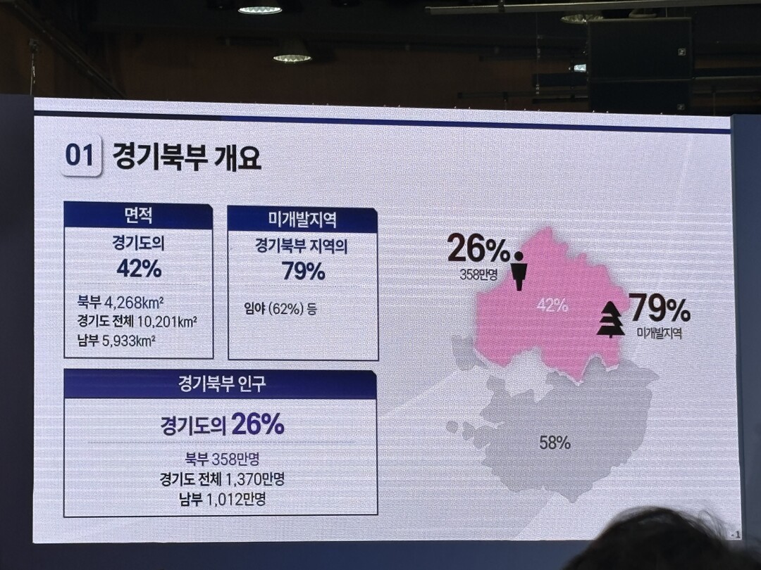 경기북부 인구는 358만명, 미개발지역은 무려 79% 반면 접경지역은 87%, 수도권정비권역은 100%에 달한다. 사실상 족쇄에 묶여있다. 군사시설보호구역은 42%, 개발제한구역 비율은 12%, 미군기지 공여구역은 4%에 삼중고를 방치돼왔다.