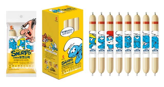 삼립식품 스머프의 포켓스틱 은 인기 애니메이션 ‘개구쟁이 스머프’에 등장하는 다양한 종류의 스머프 캐릭터를 사용한 어육 소시지다.