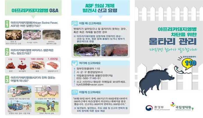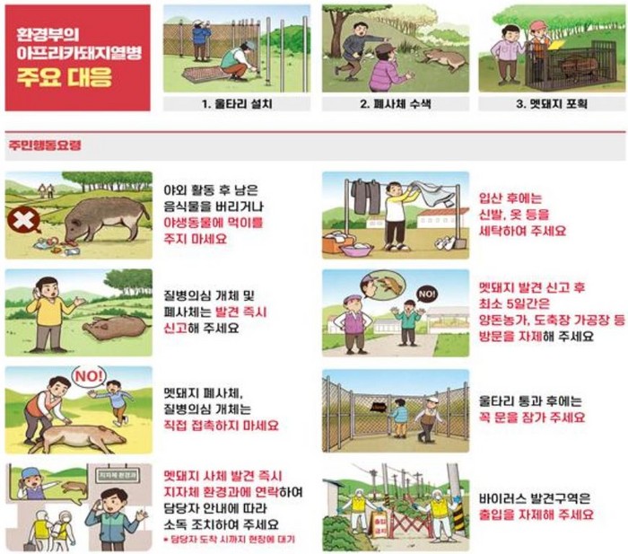 환경부 관계자는 "성묘객들은 폐사체 발견 시 즉시 신고하고 '고수레' 등 멧돼지 접근을 유도하는 행위를 삼가 달라"며, "관할 지자체 등 관계기관에서는 귀성객들이 증가하는 만큼, 울타리 출입문 닫힘상태 유지, 입산 후 양돈농가 방문 자제 등 방역수칙 안내에 만전을 기해줄 것"을 강조했다.