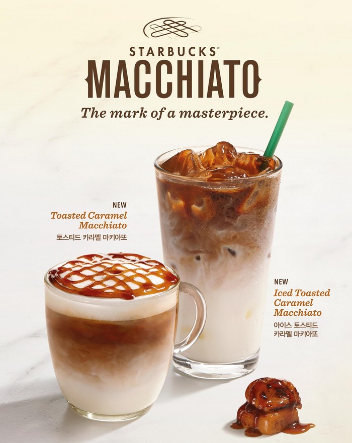 올 봄 첫 선을 보이는 토스티드 카라멜 마키아또는 살짝 구운 듯한 카라멜의 가벼운 스모키 향과 진하고 풍부한 에스프레소 샷의 조화가 따뜻한 봄 날씨에 잘 어울리는 음료이다. 핫, 아이스 두 가지로 제공하며, 가격은 톨 사이즈 기준 5800원이다.
