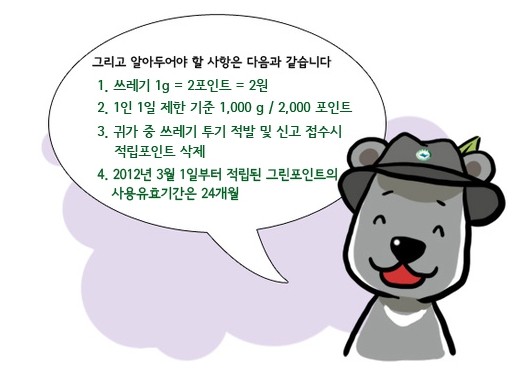 특히 이 봉사활동을 통해 ‘그린포인트’라는 것을 쌓을 수 있는데, ‘그린포인트’란 자신이 주운 쓰레기의 양에 비례하는만큼 포인트를 갖는 것입니다. 국립공원에서 시행하고 있는 제도로, 누적된 포인트로는 공원시설 무료 이용 또는 등산용품 등을 제공 받을 수 있습니다.