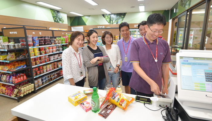 ‘Oh~樂실’에서 몸을 풀었다면 이제 주린 배를 채울 차례. 판교캠퍼스에는 팀장들에게는 두렵겠지만 팀원들에게는 행복한 편의점 ‘팀잘먹’이 있다. ‘팀잘먹’은 ‘팀장님 잘 먹겠습니다’의 줄임말이다. 이 곳은 사원증으로 결제가 가능해 팀장이 자신의 사원증으로 팀원들에게 아이스크림 등 간식을 쏘는 공간으로 자리잡았다.