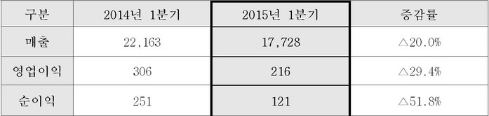 | ▲ 2015년 1분기 실적(자료 : 삼성엔지니어링) © 환경데일리 |