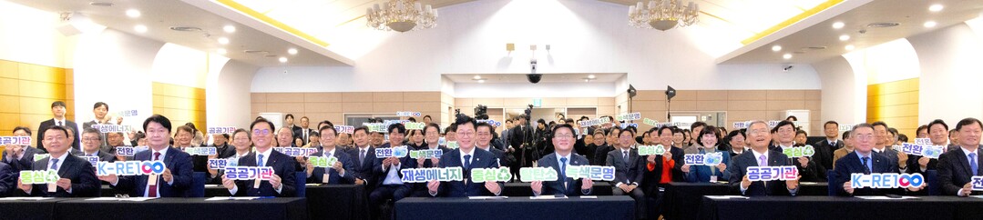 환경공단은 11일 한전아트센터 양지홀에서 열린 '공공기관 K-RE100 출범식'에 참석해 공공부문 재생에너지 확대를 본격 추진한다고 밝혔다. 이자리에는 김성환 기후부 장관도 참석했다.