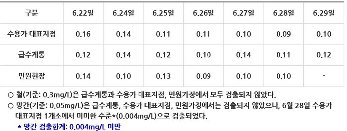 ▲인천시 상수도본부에서 수돗물 수질 검사결과 내용 |