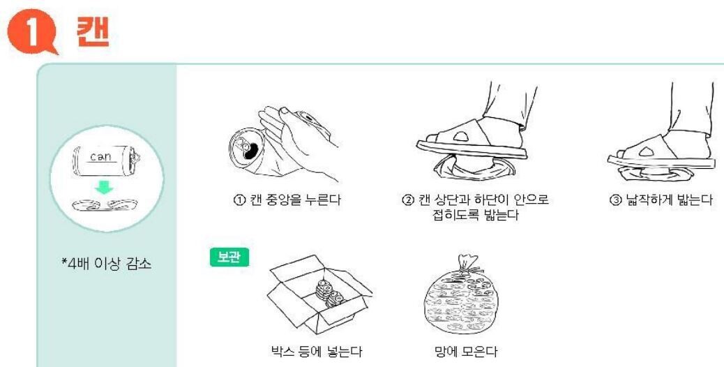 꾹꾹꽉꽉 압축가이드는 가정에서 주로 발생하는 품목을 대상으로 사람의 손으로 부피를 축소할 수 있도록 만화형식으로 만들었다.