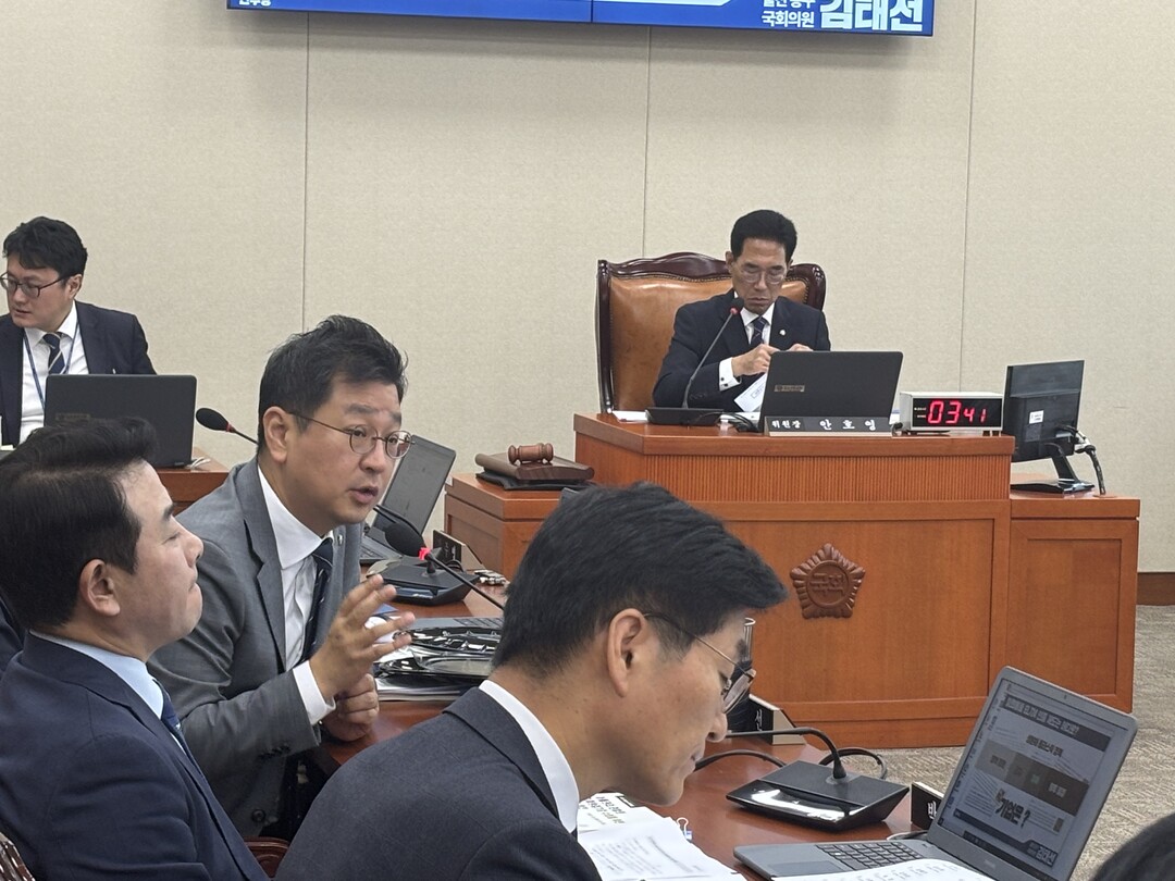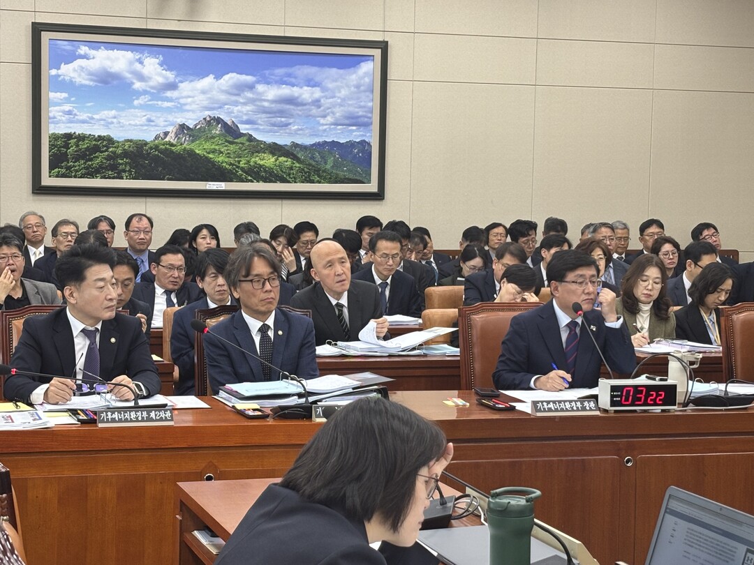 박홍배 의원(더불어민주당) 대기오염 물질 측정 과정에서 발생하는 안전사고에 대해 철저한 대책과 예산을 마련해야 한다고 주문했다.김위상 의원(국민의힘)김성환 기후에너지환경노동부장관은 기후대응댐, 고준위 방사선 폐기물처리장 건립 지연문제 등을 질의했다.기후에너지환경부 이호현 제1차관, 금한승 제2차관, 김성환 장관이 질의에 경청하고 있다.