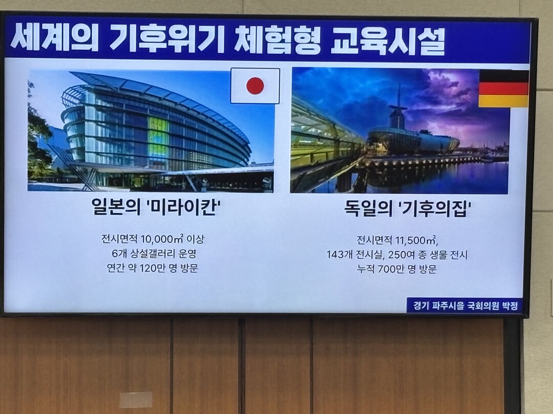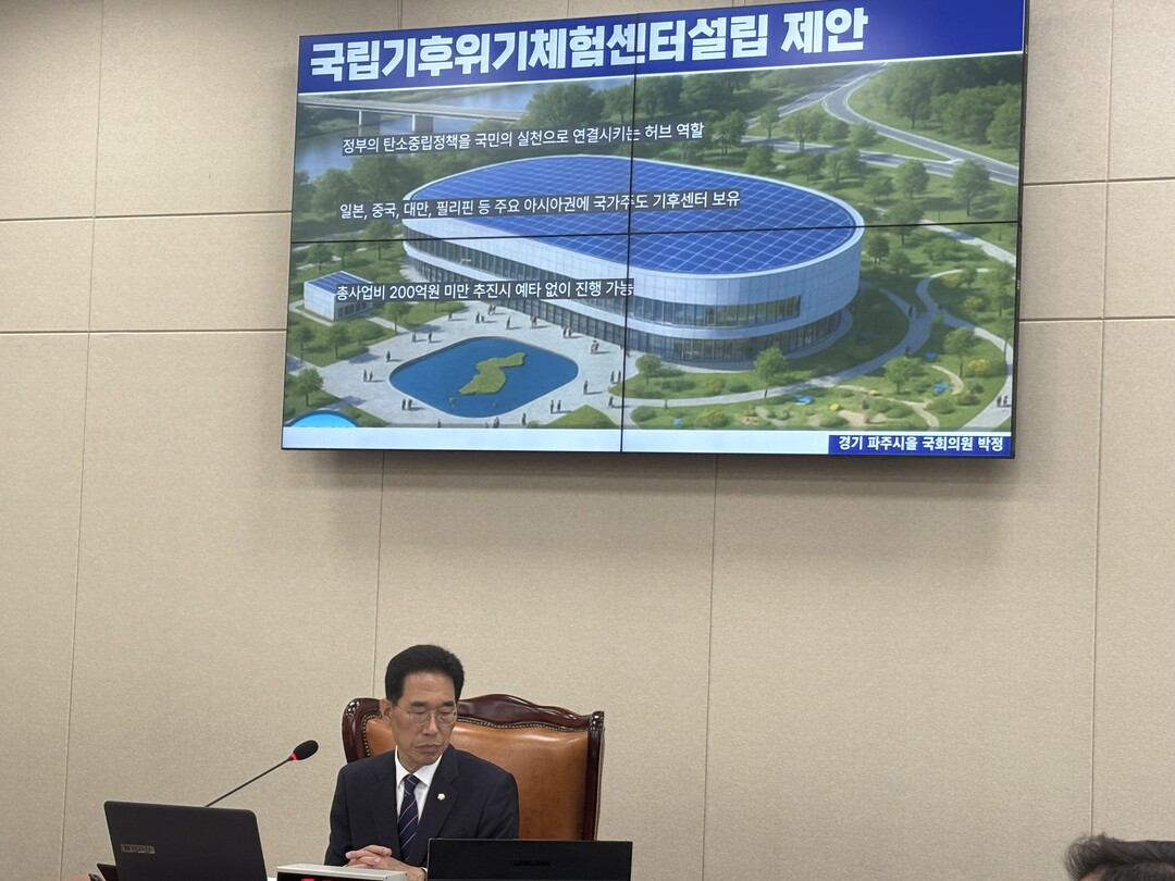 박정 더불어민주당 의원은 기후위기에 따른 학생은 물론 국민들을 체험할 수 있는 국가차원에 기후대응학교 등 건립을 추진해야 한다고 말했다.