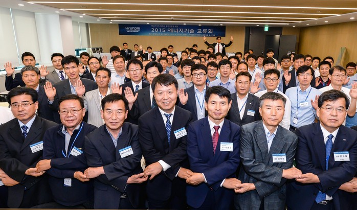 현대자동차그룹(주)은 23일 현대자동차그룹 의왕연구소에서 덕양산업, 콘티넨탈오토모티브시스템, 유라코퍼레이션, 성우하이텍, 핸즈코퍼레이션 등 총 32개 협력사 및 전문 기술 업체 관계자, 그룹 임직원 등이 참석한 가운데 ‘2015 협력사 에너지 절감 기술 교류회’를 개최했다.