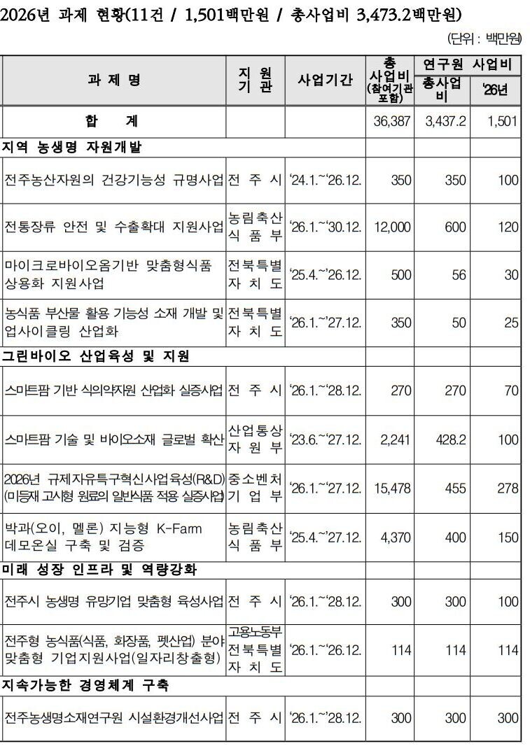 전주건강기능성 자원, 스마트팜, 바이오소재