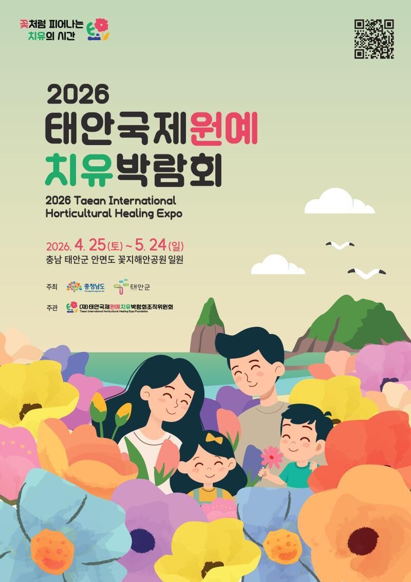2026년, 태안에서 '2026태안국제원예치유박람회(2026 Taean International Horticultural & Healing Expo)'는 시대적 요구에 응답하는 세계 최초의 국제 행사다. 4월 25일부터 5월 24일까지 안면도 꽃지해안공원 일원에서 펼쳐진다. 조직위에 따르면 올해 박람회를 찾을 관광객은 182만 명(내국 172, 외국 10)으로, 박람회에 참여하는 국가는 40개국, 화훼 및 원예 치유 등 관련 120개사가 집결한다.