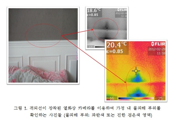 또 그동안 써왔던 설문조사나 육안관찰 등의 방식 대신 적외선 카메라를 동원, 곰팡이 등 눈에 띄는 징후가 없더라도 주변 온도보다 5℃ 가량 낮은 곳을 물 피해 지점으로 확인할 수 있었다고 연구팀은 전했다.