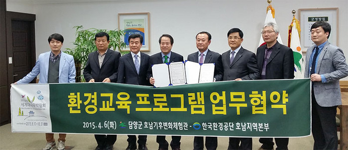 [환경데일리 온라인팀] 한국환경공단 호남권지역본부(본부장 김유식)와 담양 호남기후변화체험관(담양군수 최형식)은 6일 지역학생들을 대상으로 한 환경교육 프로그램 운영에 관한 업무협약을 체결했다.