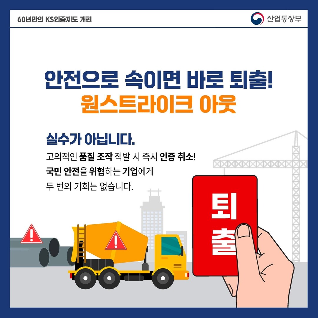 다만, 차질이 없도록 제도는 유연하게 바꾸지만, 불법·불량 제품은 통관 단계부터 철저히 차단하고, 인증 도용이나 고의적인 품질 위반에 무관용 원칙을 적용하겠다고 밝혔다. 고의적 품질 조작이나 반환경적으로 국민 안전까지 해할 경우 과감하게 원스트라이크 아웃으로 퇴출로 KS인증의 품격도 더 올리도록 했다. 관세청과 협력을 강화해 짝퉁은 무역질서를 깨는 행위도 사전에 차단할 가이드라인을 정했다.