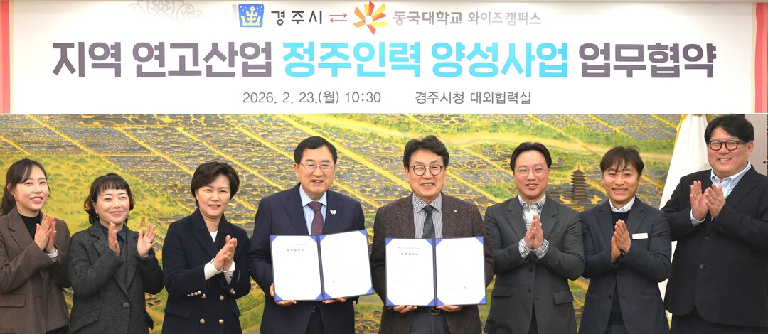 경주시는 23일 시청에서 동국대학교 WISE캠퍼스와 '지역연고산업 정주인력 양성사업' 추진을 위한 업무협약 했다고 24일 밝혔다.