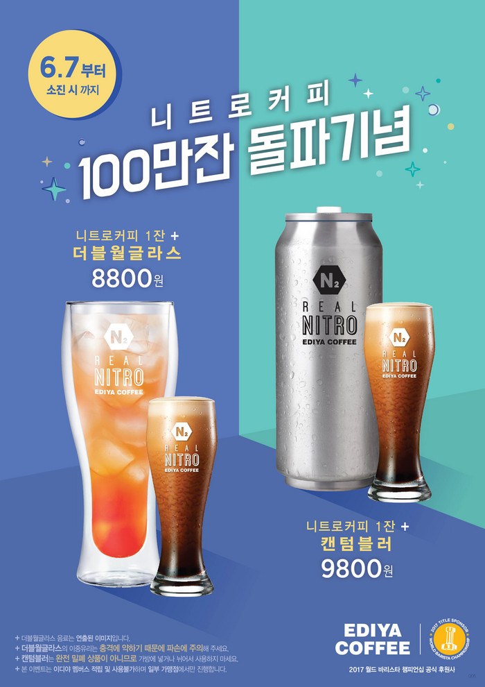 [환경데일리 유혜리 기자]대한민국 대표 커피브랜드 이디야커피(대표이사 회장 문창기)의 '이디야 리얼 니트로(EDIYA Real Nitro, 리얼 니트로)커피'가 누적 판매량 100만잔을 돌파했다.