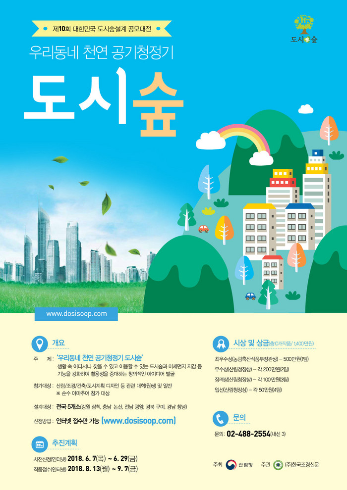 접수 기간은 6월 29일까지이며 도시숲 설계 공모대전 공식 누리집(www.dosisoop.com)에서 신청할 수 있다.