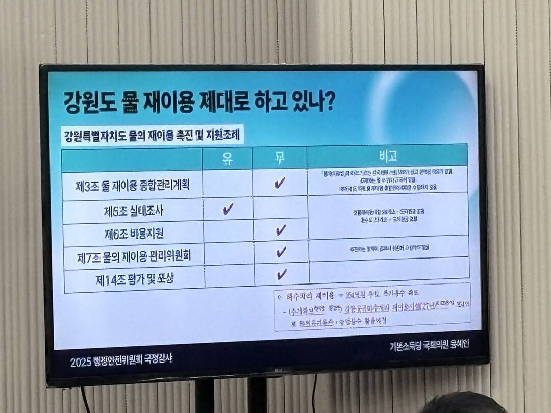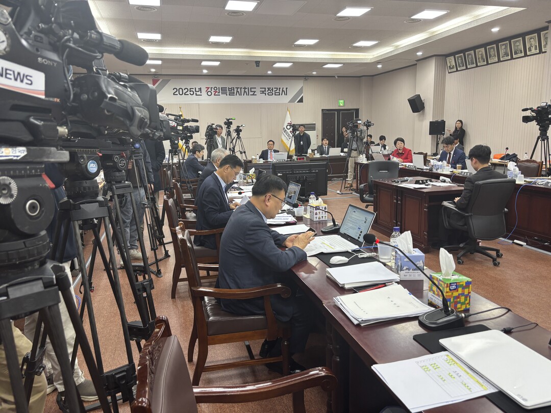 국회 행정안전위원회(위원장 서범수)는 광역시도 중 강원특별자치도 2025년도 국정감사가 24일 도청에서 열렸다. 이날 더불어민주당 소속 위원으로 윤건영·권칠승·양부남·위성곤·이광희·이상식 의원, 국민의힘은 이달희·이성권 의원, 기본소득당은 용혜인 의원이 참석했다.