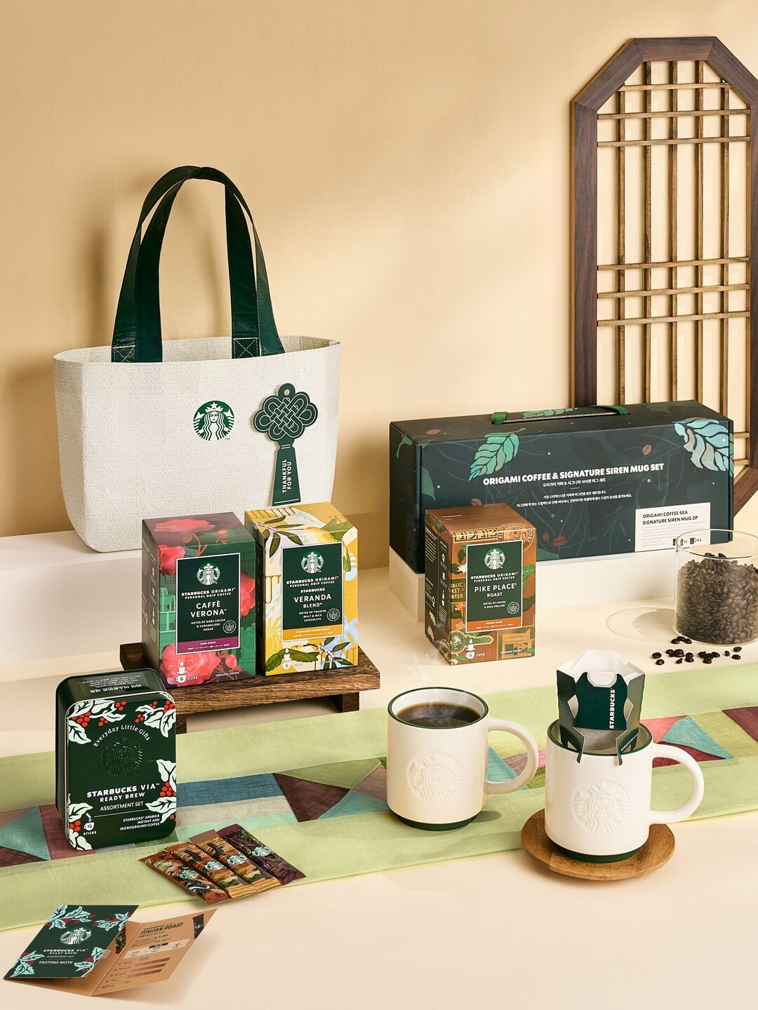 이번 설을 맞이해 온라인 스토어 한정으로 재출시 된다. '오리가미 & 머그 2P 세트'는 스타벅스의 역사를 느낄 수 있는 원두 파이크 플레이스 드립백과 사이렌 로고가 음각된 도자기제 머그를 함께 구성해 실용 설 선물로 제격이다.