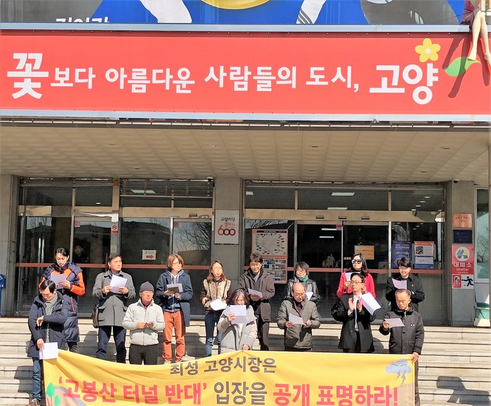 고봉산 터널 반대! 김포-관산간 도로 고양시 구간 백지화를 위한 고양시민공동대책위원회(공대위)는 3월 6일 고양시 청사앞에서 지난달로 1인시위 127차례를 마친후 첫 공식 기자회견에서 목소리를 높였다.