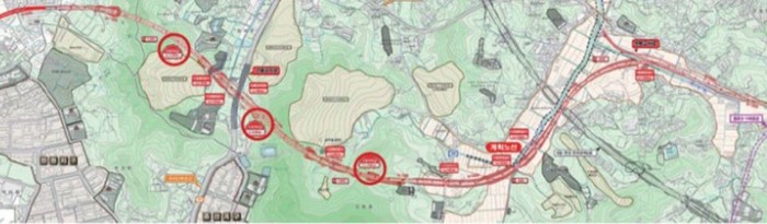 낮은 산에 터널 3곳을 관통시키는 것은 LH공사가 발주한 총사업비중 100억을 절감할 수 있기 때문이다.