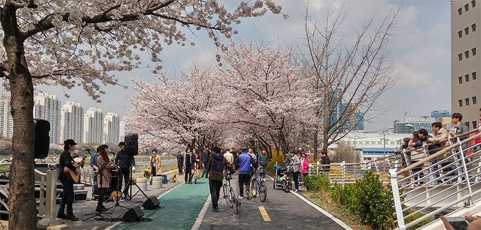 대륭12차앞 보도육교 앞에 준비된 공연장에서 혼성4인조 '백합유리잔'팀이 '벚꽃엔딩', '핑계' 등 친숙한 가요 등을 선사하며 어쿠스틱 공연을 펼쳐, 점심식사를 마치고 안양천 벚꽃길을 찾은 직장인들과 벚꽃나들이를 나온 주민 300여명에게 즐거운 시간을 제공했다. 또 9일(목) 낮12시에는 남성3인조 '갈릭스' 팀이 함께하는 런치콘서트가 안양천에서 펼쳐졌다.