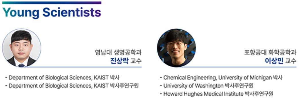 신진 과학자 세션에서 ▲진상락 영남대 교수가 '합성생물학 기반 고효율 C1 가스 활용 미생물 개발' ▲이상민 포항공대 교수 '인공지능 기반 기능성 단백질 설계'주제로 각자의 연구 성과를 발표한다. 유튜브 실시간 중계로 시청 가능하다.
