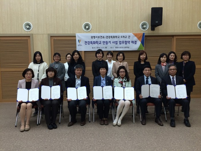 [환경데일리 이은수 기자] 광명시보건소(소장 이현숙)는 21일 지난해 모집한 건강특화학교 6개교(광명북, 광명, 철산, 하안남, 하안, 하일)와 건강특화학교 만들기 사업 추진을 위한 업무협약(MOU)을 체결했다.