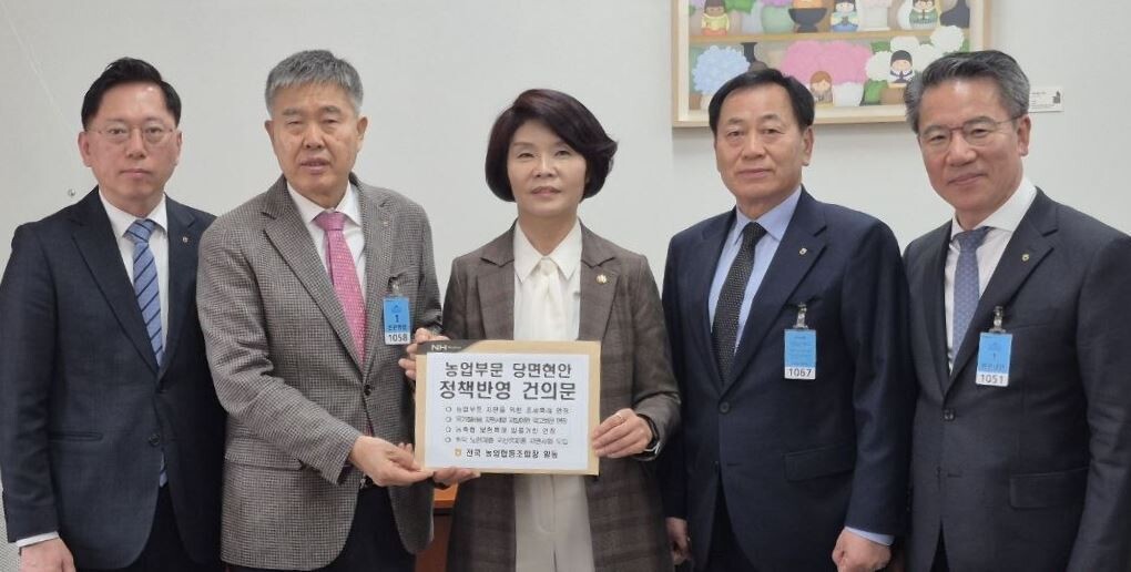 이날 건의문은 장영길 조합장(충남 송산농협), 진경만 조합장(서울축산농협), 장순석 조합장(서울강서농협)이 어기구 농해수위원장과 한정애 더불어민주당 정책위 의장에게 전달했다.