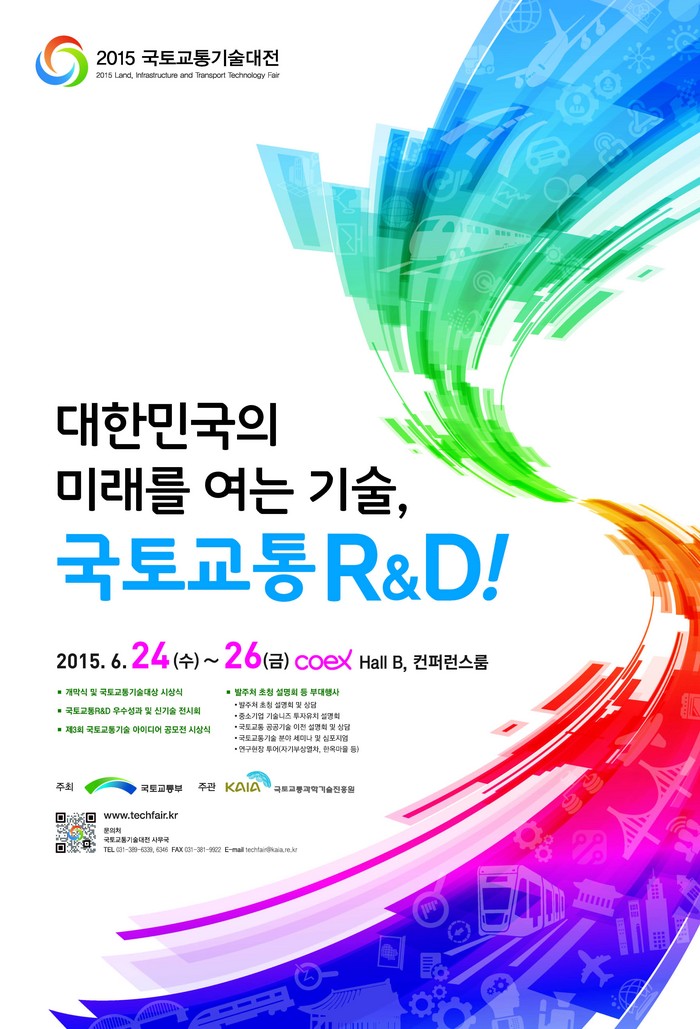 한편 행사와 관련된 주요일정, 사전등록, 세부 프로그램 등은 2015 국토교통기술대전 홈페이지(www.techfair.kr)를 통해 확인할 수 있다.