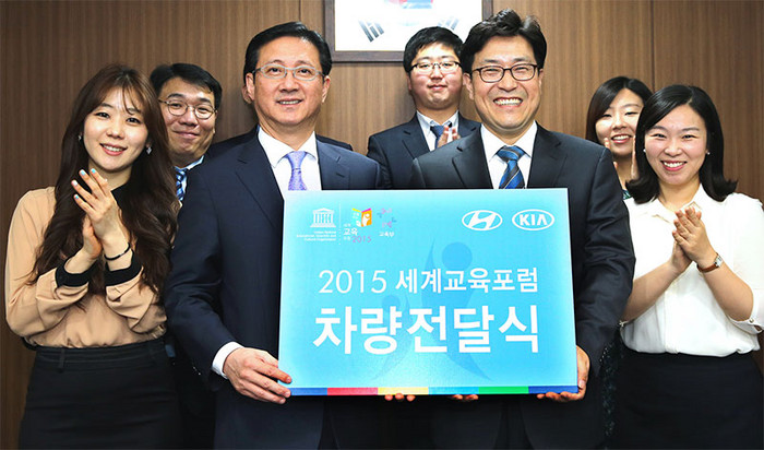 차량 전달식에 참석한 현대기아차 이봉주 이사는 "지구촌의 미래를 위한 전세계 교육 비전을 논의하는 의미있는 자리에 공식 차량 후원사로 함께 하게 돼 매우 뜻 깊게 생각한다"며, "2015 세계교육포럼의 성공적인 개최를 위해 차량 협찬 및 운영을 적극 지원하겠다"고 말했다.