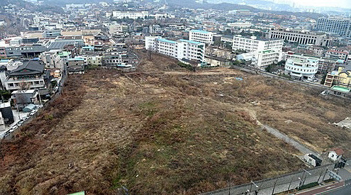 ▲ 서울시 종로구 송현동 미 대사관 직원 숙소부지에 대한항공이 관광호텔 건립을 위해 전방위 로 로비하고 관광진흥법까지 바꿔 추진하려도 무산됐다. 정세균 국회의원은 새로운 법개정에 곳곳에 함정이 숨어있다고 법 © 환경데일리 |