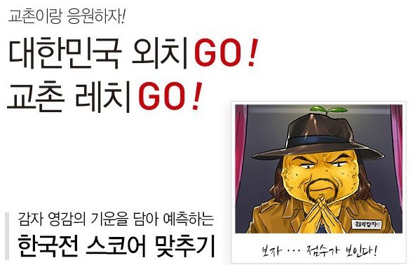 [환경데일리 윤경환 기자]국내 대표 치킨 프랜차이즈 교촌에프앤비㈜가 러시아 월드컵 축제에 맞춰 대한민국 축구팀을 응원하고자 경기 스코어 맞추기 이벤트를 진행한다.