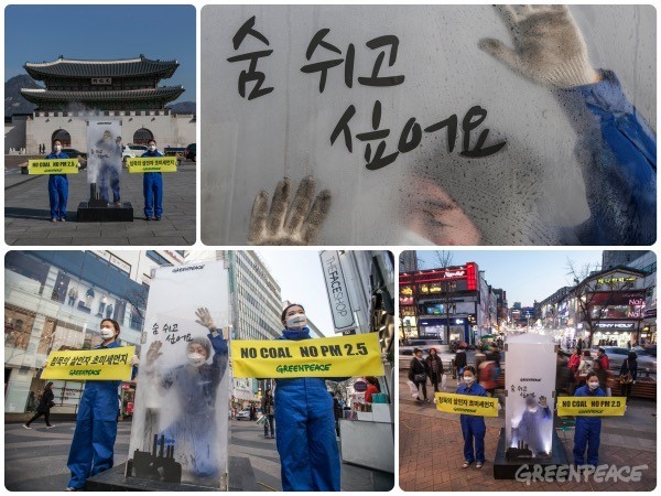 | ▲지난해 그린피스의 초미세먼지 대한 경각심을 일으킨 퍼포먼스가 전국 곳곳에서 벌어졌다. © 환경데일리 |