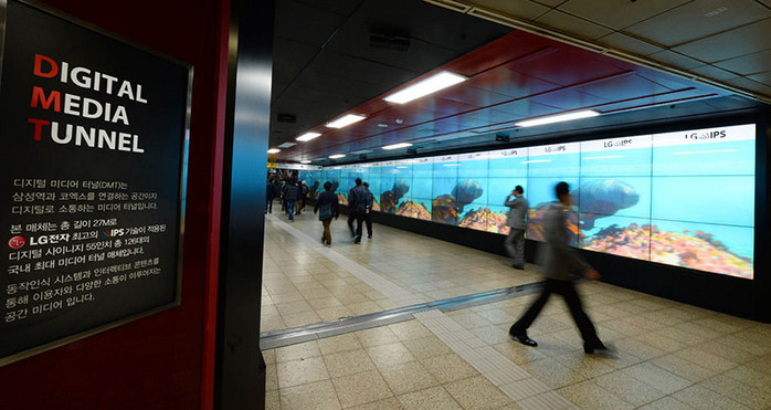 디지털 미디어 터널은 삼성역과 코엑스를 연결하는 통로에 있는 초대형 사이니지로 광고판의 길이가 27m이며 LG전자 55형 IPS 사이니지 126대로 제작됐다.