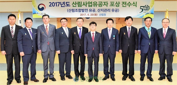 산업포장에는 임업인의 소득향상을 위해 지속적으로 노력한 광양시산림조합 강대유 조합장, 소나무재선충 방제와 미래인재 육성에 공헌한 김해시산림조합 류해율 조합장과 산림조합의 미래지향적 전략수립과 새로운 조직문화 조성에 앞장선 산림조합중앙회 이동환 지도상무가 대통령 표창을 수상했다.