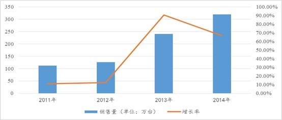 2014년 중국 공기청정기 시장보고서에 의하면, 2014년 중국 내 공기청정기 판매량은 320만 대로, 전년대비 66.7%로 증가하는 엄청난 수치를 보였다.