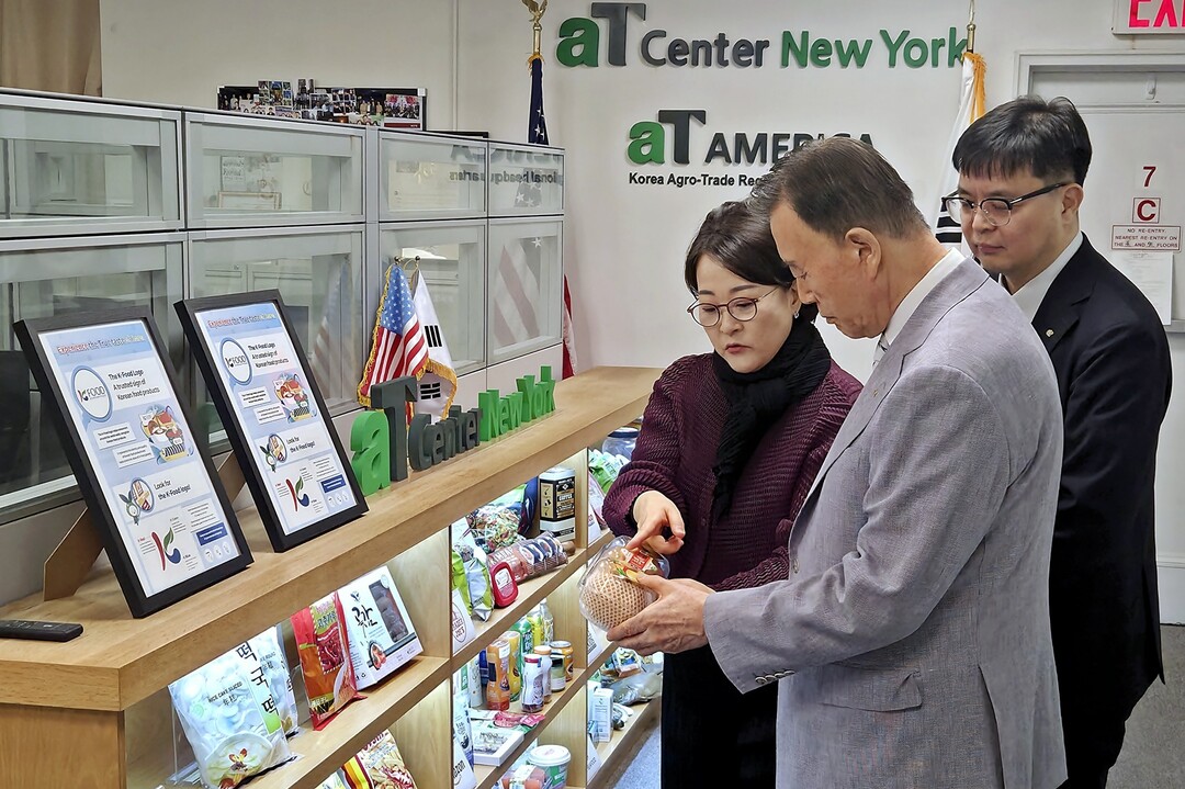홍문표 사장은 이날 aT공사 뉴욕지사를 찾아 미주지역 K-푸드 수출동향과 현지 우리 식품 전략 마케팅 공급망 다변화, 미국 소비자들의 입맛을 찾는 현지화 등에 대한 업무보고를 받았다. [환경데일리 = 윤경환 선임기자]
