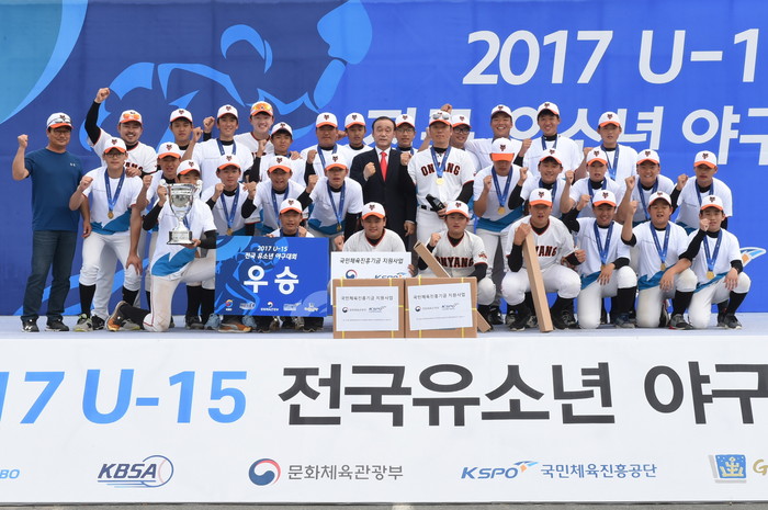 [환경데일리 이수진 기자]전국 102개 중학교팀이 참여한 '2017 U-15 전국유소년야구대회'가 충남 온양중, 전북 군산중, 서울 신월중, 경기 매향중이 리그별 우승을 차지하면서 26일 대단원의 막을 내렸다.