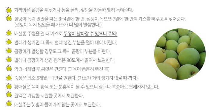 황매는 잘 익은 매실이다. 주부들이 집에서 받아 볼때 연한 연두빛이 나야 황매다.
