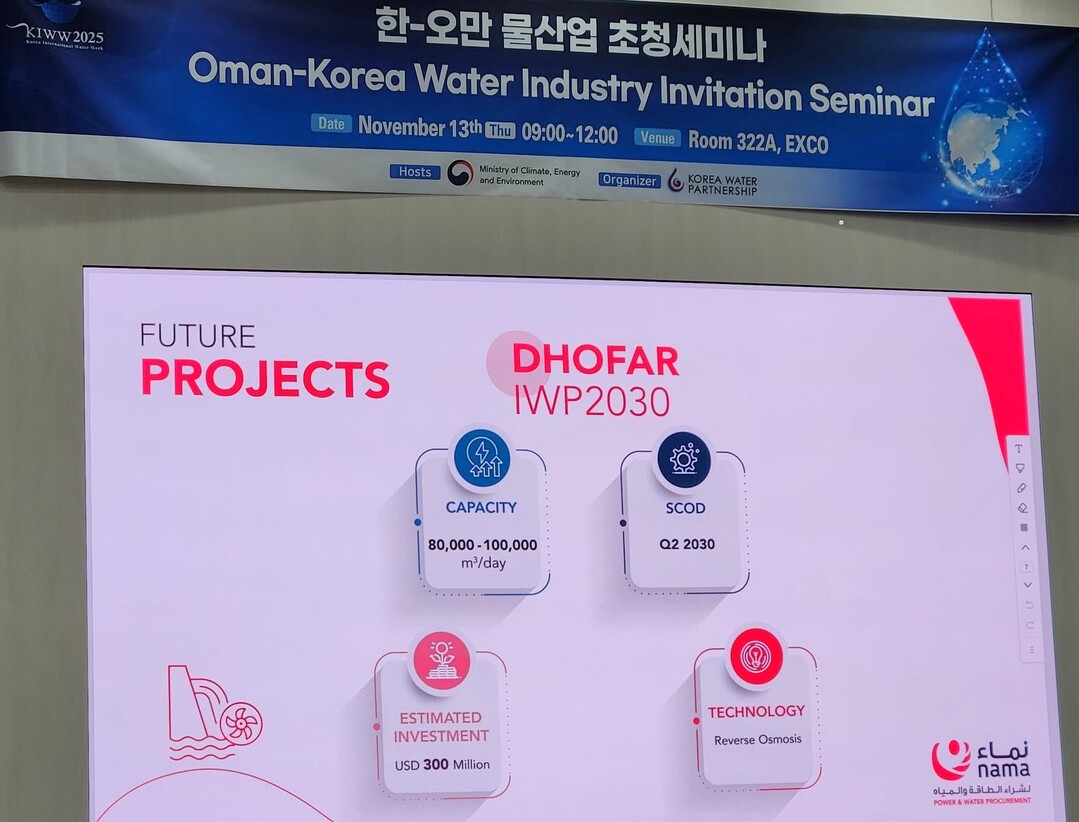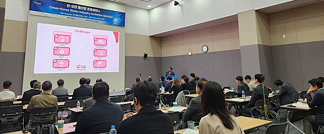 이번 현지 상황에 따라 한국물산업협의회(KWP, 회장 홍승관)가 물산업 유망국으로 꼽히는 오만의 발주처 관계자를 11일부터 14일까지 2025 대한민국 국제물주간(KIWW)에서 한-오만 물산업 협력 세미나에서 오만 물산업 현주소를 들려다 봤다.