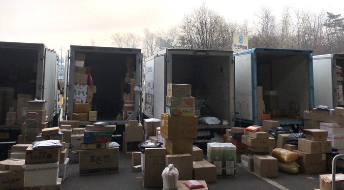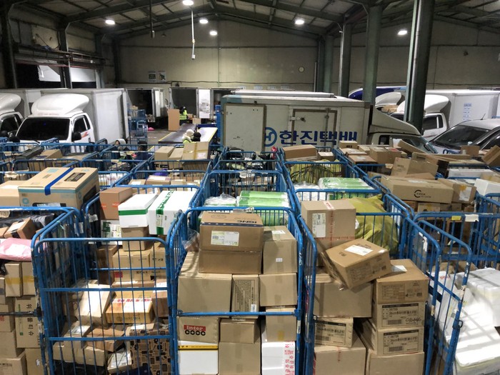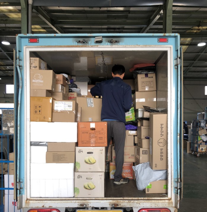 | ▲택배 현장, 전국에서 몰려온 다양한 크기와 무게, 그리고 포장재가 제각각인 택배물량들이 최종 배달을 앞두고 있다. |