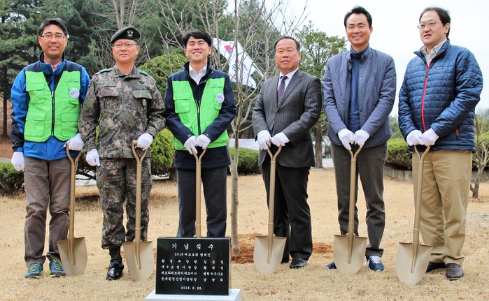 이날 행사는 남광희 원장, 황대일 사단장, 오재항 부사장 및 관련 기관 임직원 150여명이 참여 전나무, 자작나무 등의 나무를 심었다.